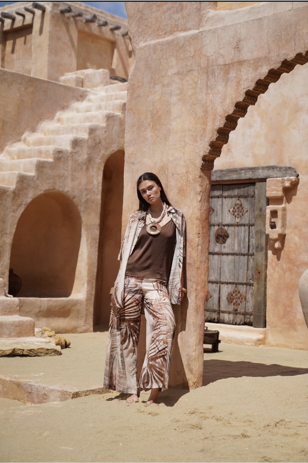 Široké kalhoty s vysokým pasem z čerstvě potištěné bavlny. Elastický pas vzadu a boční kapsy vpředu. Podšité kraťasy. Složení: 100% bavlna. Původ: Itálie. Praní při 30 °C.